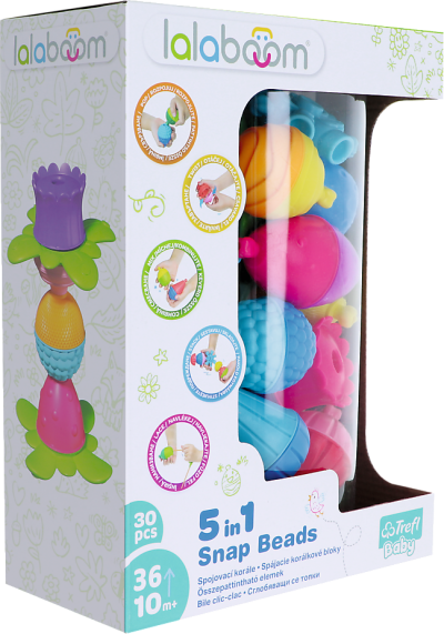 Hračka pomáhá rozvíjet všechny smysly, především zrak, sluch a hmat. Díky hře s korálkovými bloky se dítě učí ve vlastním tempu. Spojovací korále mají různé barvy, tvary a strukturu - poskytují různorodé dotykové vjemy. Lalaboom roste spolu s dítětem a podporuje jeho rozvoj na více úrovních. Korále pomáhají zdokonalovat přesnost pohybů rukou, důkladnost uchopování prsty a také otočné pohyby zápěstí. Spojovací bloky cvičí zrakově-pohybovou koordinaci, rozvíjí kreativitu a prostorovou představivost.
