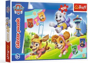 Třpytivé puzzle se 100 dílky s motivem oblíbených animovaných pejsků.