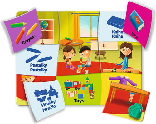 Anglické vzdělávací puzzle jsou navrženy tak, aby předškolákům pomohly při učení angličtiny. Děti se učí slovíčka z oblastí, o které mají největší zájem a přitom si užívají spoustu zábavy. Slovíčka jsou rozdělena do hracích desek podle témat, díky čemuž jsou informace na nich uvedené snadněji zapamatovatelné. Balení obsahuje: