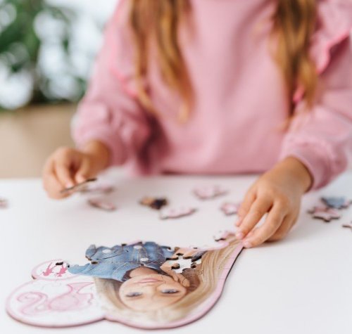 Dřevěné oboustranné puzzle TREFL z prémiové řady Wood Craft Junior se speciálně tvarovanými dílky. Puzzle je vyrobeno ze silné dřevovláknité desky a vyřezáno laserem, díky čemuž jsou okraje hladké a dílky do sebe lehce zapadají.