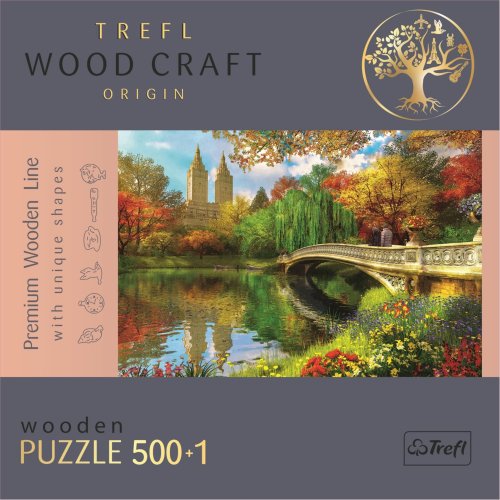 Dřevěné oboustranné puzzle TREFL z prémiové řady Wood Craft Origin se speciálně tvarovanými dílky ve tvaru slavných budov, dopravních prostředků nebo třeba zvířat.