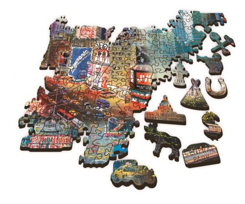 Dřevěné oboustranné puzzle TREFL z prémiové řady Wood Craft Origin se speciálně tvarovanými dílky ve tvaru slavných budov, dopravních prostředků nebo třeba zvířat. Puzzle je vyrobeno ze silné dřevovláknité desky a vyřezáno laserem, díky čemuž jsou okraje hladké a dílky do sebe lehce zapadají. - vysoká kvalita a precizní zpracování laserem - 100 unikátně tvarovaných dílků ve tvaru budov, předmětů a zvířat - ostatní dílky v nepravidelných tvarech - puzzle je oboustranné - z jedné strany obrázek, z druhé strany vzor - ekologické balení - zcela bez plastových obalů Součástí balení je předloha skládaného motivu.