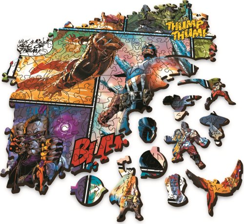 Dřevěné oboustranné puzzle TREFL z prémiové řady Wood Craft Origin se speciálně tvarovanými dílky, které jsou inspirované světem Avengers.