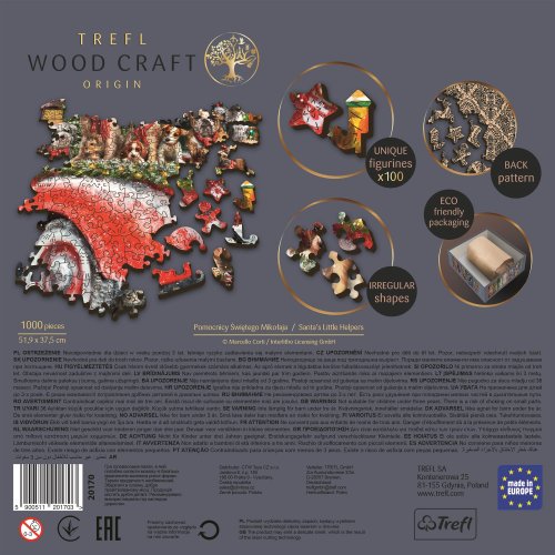 Dřevěné oboustranné puzzle TREFL z prémiové řady Wood Craft Origin se speciálně tvarovanými dílky, které jsou inspirované Vánocemi. Puzzle je vyrobeno ze silné dřevovláknité desky a vyřezáno laserem, díky čemuž jsou okraje hladké a dílky do sebe lehce zapadají.