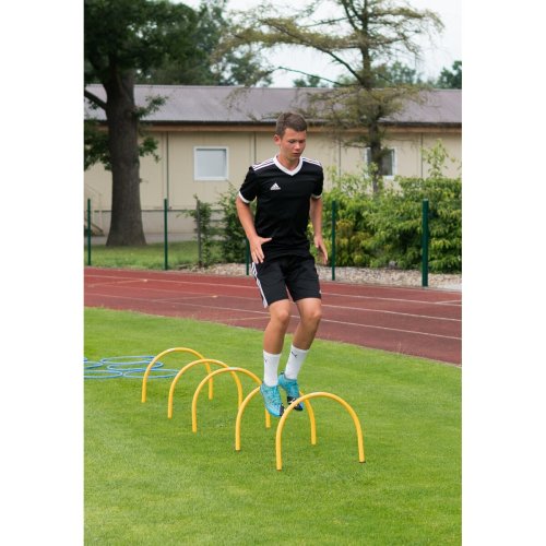 Tréninkový oblouk slouží ke zlepšení přesnosti přihrávek a kontroly nad míčem. Tréninkový oblouk Merco je vyrobený z PVC trubky o průměru 30 mm, na kterou jsou na obou koncích pevně a esteticky přinýtované ocelové hroty s koncovkami z odolného vysokohustotního polyetylenu pro ochranu před zraněním. Pro dobrou viditelnost jsou oblouky obarvené fluorescentní žlutou barvou. Tréninkový oblouk Merco je určený pro trénink na travnatých hřištích. Oblouk je vysoký 41 cm a široký 49 cm.