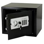 Tyto domácí trezory jsou v moderní černé barvě a mají kvalitní kovové provedení. Uvnitř trezoru jsou dvě přihrádky.
