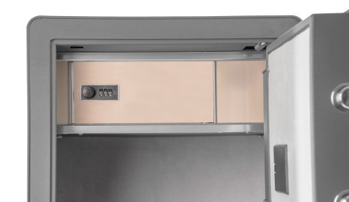 Do trezoru G21 jsme přidali odnímatelnou polici, díky které si vnitřní prostor snadno přizpůsobíte podle aktuálních potřeb. Navíc jsme na horní stranu trezoru zabudovali praktickou vnitřní přihrádku, která je uzamykatelná samostatným číselným zámkem a nabízí další úroveň zabezpečení k hlavnímu prostoru. Bez ohledu na to, zda do trezoru chcete uložit doklady, šperky nebo cennou techniku, vždy budete mít dostatek místa. K dispozici máte 51,6 litru úložného prostoru.