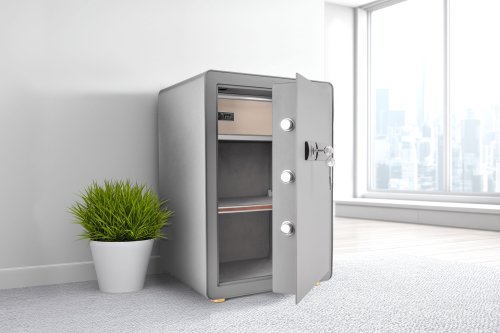 Trezor G21 jsme vyrobili z kvalitní oceli, která odolá před každým pokusem o násilné otevření. Síla oceli na stěnách je 1,5 mm a na dveřích dokonce 4 mm. O bezpečné uzamčení trezoru se postarají tři masivní zajišťovací trny o síle 2,5 cm. Konstrukce je volně stojící, ale v případě potřeby můžete trezor ukotvit do zdi pomocí připravených otvorů.
