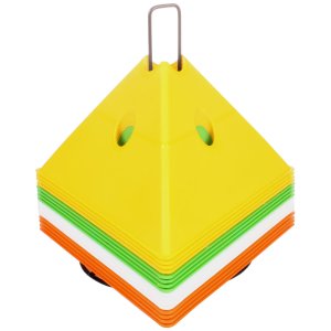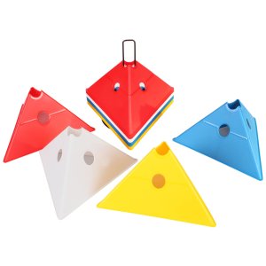 Sada šestnácti vytyčovacích met se stojánkem pro snadné přenášení. Multifunkční vytyčovací mety Merco Tri Corners jsou praktickou pomůckou trenérů různých sportovních odvětví. Mety slouží k vyznačení tréninkové plochy a vytvoření agility překážek ve spojení s plastovými tyčemi s průměrem 25 mm. Plastová meta má výšku 13,5 cm, délku strany 24 cm a hmotnost přibližně 75 g. Úvodní obrázek je pouze ilustrativní a barvy v sadě se mohou lišit. Jednotlivé kombinace nelze vybírat, dodáváme dle aktuálních skladových zásob.