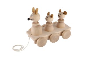 Začalo vaše děťátko již s prvními krůčky? Každé dítko má z chůze obrovskou radost a pro ještě větší zábavu mu pořiďte dřevěnou tahací hračku. Tři myšky se při jízdě roztomile hýbou. Rozměr hračky: 22 cm Rozměr krabice: 22 x 18 x 12 cm Vhodné od 3 let