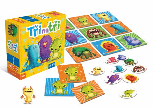 Svižná postřehová hra je plná rozdováděných příšerek, které si rády hrají na schovávanou. První hráč, který chytí pět z nich, se stává vítězem! Cílem hry je přikládat k sobě vhodné kartičky tak, aby vznikaly řady barev a vzorů. Na stole leží čtverec tvořený devíti startovními kartami s obrázky příšerek. Hráči na ně pokládají karty s odpovídajícími příšerkami a podobně jako v piškvorkách se snaží tvořit vítězné řady; řídí se přitom barvou nebo vzorem pozadí. Hra pro celou rodinu obsahuje dvě varianty s různou obtížností a přináší nejen dobrou zábavu, ale pomáhá také cvičit postřeh, rychlé reakce a schopnost soustředění. Jako dárek se navíc v krabičce skrývá i pexeso zdarma! Obsah balení: - 81 karet příšerek - 9 startovních karet - 18 bodovacích žetonů - návod - pexeso jako dárek Věk hráčů: 5+ Počet hráčů: 2–4 Doba hraní: 20 min