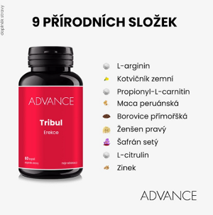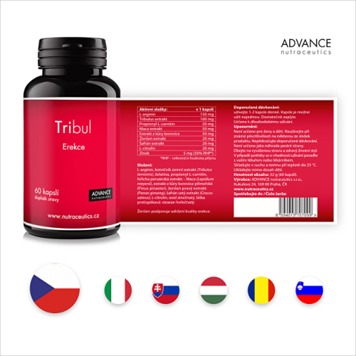 Tribul je komplexní doplněk stravy pro podporu kvality erekce, s obsahem unikátní kombinace 9 aktivních látek L-argininu, extraktu tribulusu, propionyl-L-carnitinu, extraktu maca, extraktu z kůry borovice, extraktu ženšenu, extraktu šafránu, L-citrulinu a zinku pro maximální synergický efekt. Doplněk stravy s jedinečným složením na českém trhu.