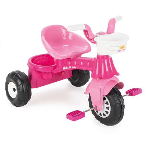 Tuto roztomilou tříkolku zdobí růžová barva s motivem kopretiny („Daisy“), která jí dodává přitažlivý dětský vzhled.Konstrukce tříkolky je lehká a zároveň pevná. Má tři robustní kola (pneumatiky jsou masivní/plastové), která zajišťují stabilní pohyb a snadné ovládání.Tříkolka nabízí praktické úložné řešení – velký košík na přední straně i další úložný prostor vzadu, kam si dítě může vložit své oblíbené hračky.Doporučený věk dítěte je od přibližně 3 let (děti od 36 měsíců). Maximální hmotnost je až 35 kg.