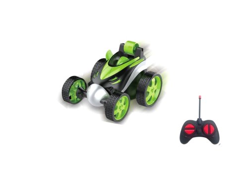 Perfektní trikové auto, se kterým můžeš jezdit nejen dopředu, dozadu nebo do stran, ale můžeš si užít spoustu zábavy s točivými předními koly či jízdou po zadních kolech. Jízda je doplněna parádními světelnými efekty. Velikost autíčka 9,5×13×10,5 cm. Velikost balení 16×12×11,5 cm. Tužkové baterie pro provoz a ovladače nejsou součástí balení. Auto je ve 4 barevných variantách – zelené, modré, červené a oranžové.