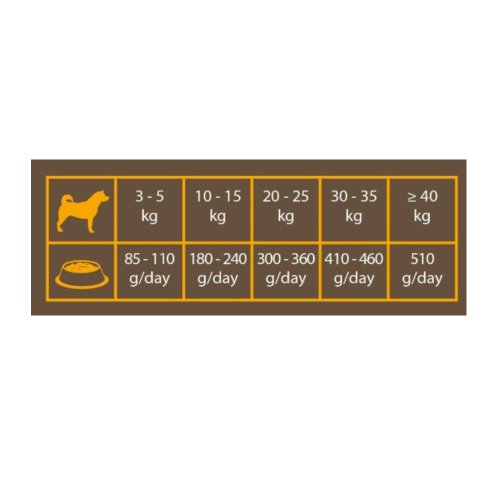Způsob podávání: změnu krmiva je třeba provádět postupně po dobu 7 dní. Podávejte denní krmnou dávku nejlépe rozdělenou na 2 až 3 porce denně, a to vždy ve stejnou dobu. Krmná dávka se může lišit v závislosti na aktivitě, psím plemeni a podmínkách okolního prostředí. Pes musí mít vždy k dispozici čistou a čerstvou vodu.
