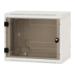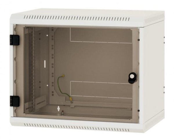 Jednodílný nástěnný rozvaděč s krytím IP20, nosnost při správném zavěšení 80 kg. Dveře celoskleněné s bezpečnostním tvrzeným sklem 4 mm, robustní svařovaná konstrukce. Součástí rozvaděče jsou dvě posuvné vertikální lišty.
