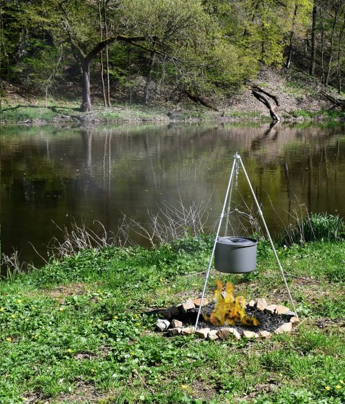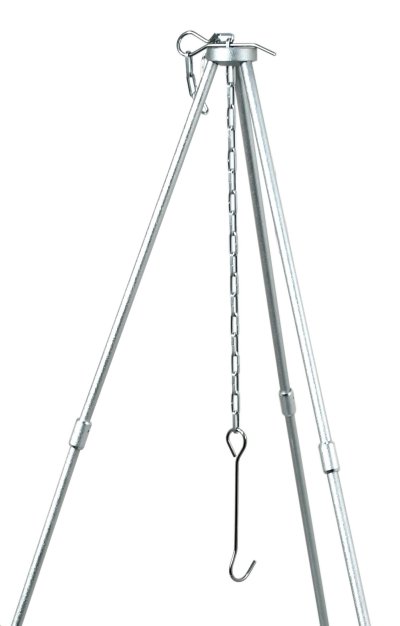 Máte rádi kempování a vaření v klasickém kotlíku? Pak se vám bude hodit 86cm trojnožka Cattara. Tento praktický skládací tripod je výtečným pomocníkem pro zavěšení zátěže do 15 kg (kotlíků, konvic, apod.) nad ohněm, ale i plynovým vařičem. K zavěšení kotlíku slouží hák na řetězu. Závěs je opatřen řetízkem a zakončením, kterým je možné regulovat výšku samotného háku.