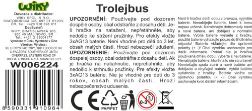 Kovový trolejbus na setrvačník. Světelné a zvukové efekty. Velikost 16 cm. 3xAG13 baterie součástí. 3 varianty - zelená, modrá, žlutá.