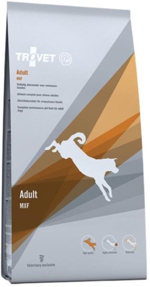 Vysoká kvalita, lehce stravitelné krmivo se 100% živočišnou bílkovinou (kuře a vejce). Vynikající kvalita amino kyselin. Neobsahuje chemické příchutě, barviva a aditiva. Neobsahuje pšeničné a sojové deriváty. Speciálně vytvořeno pro psy s normální nebo mírně zvýšenou energetickou potřebou. Vysoká kvalita proteinů splňuje nutriční požadavky a podporuje správné životní funkce. Vysoká chutnost. Optimální poměr 3/6 Omega kyselin, přídavek lecitinu pro zdravou srst. Vhodné pro psy, kteří se zúčastňují výstav. Vhodné pro sportovní nebo pracovní plemena psů. Je možno kombinovat s TROVET pochoutkami. Krmivo MXF je možno podávat po celý život psa.