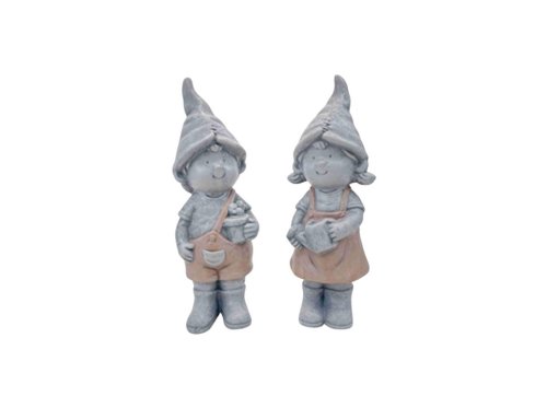 Roztomilý keramický trpaslík ve verzi holka a kluk v šedé a růžové barvě, který oživí váš prostor. Jeho rozměry jsou 80x217mm. Zboží je dodáváno v mixu. Doručované zboží je vybíráno náhodně a nelze vybrat konkrétní provedení.