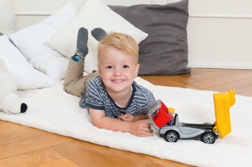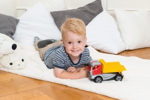 Truckies sklápěč z kvalitního plastu a velmi pevnou stavbou. Plně mechanicky funkční. Obsahuje odklopitelnou kabinu s aktivním panáčkem.