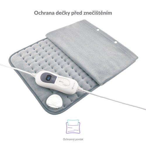 Ovládání dečky zvládne úplně každý. Pomocí ovladače si ze tří úrovní vyberete teplotu, která vám vyhovuje. Pomocí funkce Fast Heat se dečka rychle a rovnoměrně nahřeje a příjemné a ulevující teplo se tak dostaví mnohem rychleji, než kdybyste vytápěli celou místnost, obzvlášť v chladnějších podmínkách. Deku i povlak můžete bez obav prát v pračce.