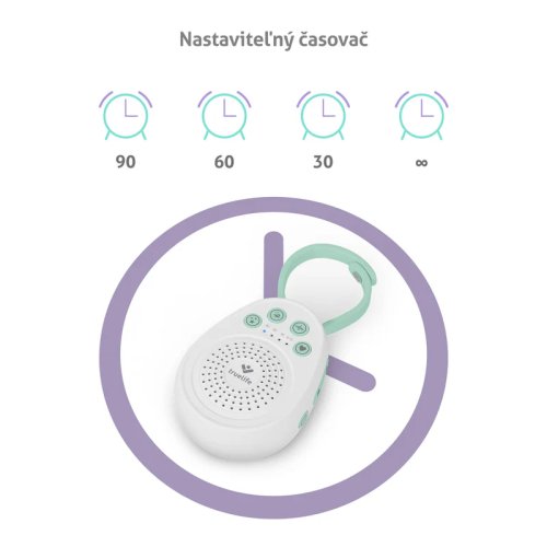 Široký repertoár pro klidné uspávání Miminka snáze usnou, když uslyší příjemný zvuk a TrueLife BabyTone S3 jich nabízí hned 20. Na výběr máte 5 melodií, 9 zvuků přírody, 5 zvuků bílého šumu či tlukot srdce. Srdeční tep miminko zklidňuje už v prenatálním období a po narození mu připomíná bezpečí. Zvuk, který si miminko oblíbí, zní z kvalitního reproduktoru ve smyčce, dokud zařízení manuálně nebo za pomoci časovače nevypnete. Časovač lze nastavit na 30, 60 nebo 90 minut. Oblíbený zvuk není třeba vždy hledat, poslední použitý zůstane v paměti a po zapnutí se hned přehraje, takže si jen nastavíte potřebnou hlasitost.