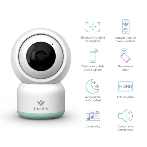 Dopřejte si klidu, protože víte, že je vaše děťátko v pořádku. Nenápadný strážce miminek i starších dětí v podobě chůvičky TrueLife NannyCam R3 Smart se postará, že budete mít svou ratolest neustále na očích, ať už jste kdekoliv. Chůvičku snadno spárujete se svým mobilním telefonem a v aplikaci TrueLife Smart, která je kompletně v českém jazyce. Můžete nejen sledovat, co dítě právě dělá, ale rovněž nastavit různé chytré funkce. Vše je snadné, rychlé a bezpečné. Rotační chůvička nepřetržitě monitoruje prostor, kde se dítě nachází a poskytuje obraz ve Full HD kvalitě. Umí detekovat pohyb, zvuk i teplotu a v pravý čas upozornit, když se něco děje. Ukolébavky zase pomohou vaše děťátko uspat a vytvořit mu příjemné prostředí.