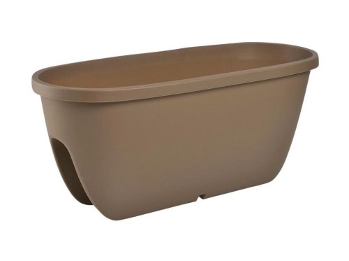 Plastový hnědo-šedý oválný truhlík s jemnými glitry. Truhlík je určený na balkónová zábradlí o maximální šířce 6 cm. Na dně má vylisovaný výřez, který se směrem vzhůru zužuje, tím se položí a upevní na zábradlí. Prodáváme v délce 60cm v různých barvách.