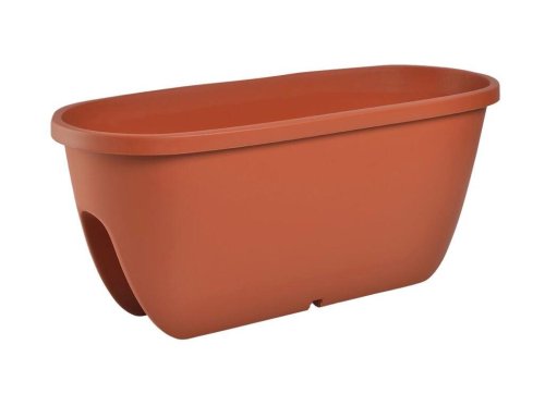 Plastový terakotový oválný truhlík s jemnými glitry. Na dně má vylisovaný výřez, který se směrem vzhůru zužuje, tím se položí a upevní na zábradlí. Truhlík je určený na balkónová zábradlí o maximální šířce 6 cm. Prodáváme v délce 60cm v různých barvách.