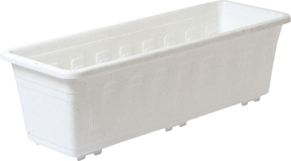 Plastový truhlík na květiny, pro lepší růst a snadnější zálivku se doporučuje provrtat dno pro odtok vody a kombinovat s miskou pod truhlík.