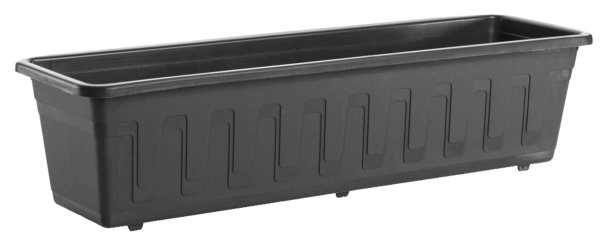 Plastový truhlík s výrazným okrajovým lemem. Barva: antracitová. Šířka: 79 cm, výška: 15 cm, hloubka: 17 cm.