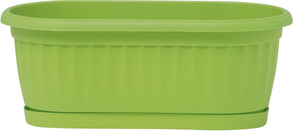 Samozavlažovací plastový truhlík s dezénem. Součástí je podmiska, kterou lze snadno sundat. Truhlík je úzký, je tedy vhodný i pro umístění na úzké parapety. Barva: světle zelená. Šířka: 22 cm; výška: 9 cm, hloubka: 12 cm.