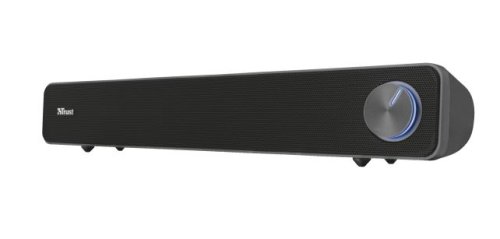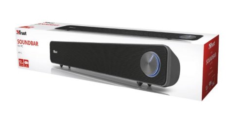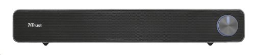 Trust Arys PC Soundbar je elegantní a prostorově úsporný zvukový panel navržený pro umístění pod monitor počítače. S maximálním výkonem 12 W (6 W RMS) poskytuje bohatý a působivý zvuk pro filmy, hry i hudbu. Díky napájení přes USB není potřeba další elektrická zásuvka, což zjednodušuje instalaci a udržuje pracovní prostor čistý. Velký osvětlený ovládací knoflík na přední straně umožňuje snadné nastavení hlasitosti.
