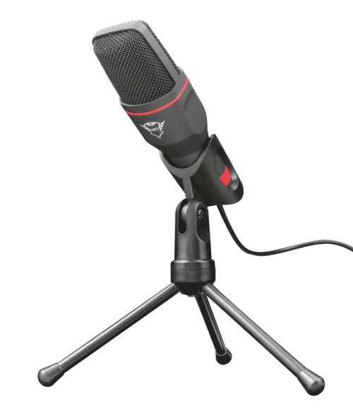 Trust GXT212 USB Microphone. Vysoce výkonný studiový mikrofon USB na stativovém stojanu, který pracuje s připojením 3,5 mm a USB.