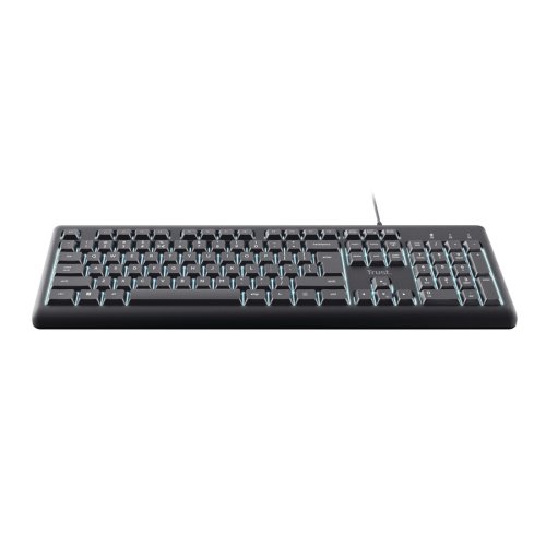 Pracujte nepřetržitě s klávesnicí Trust Primo Illuminated. Tato tichá klávesnice je vybavena podsvícenými klávesami LED pro snadné čtení bez ohledu na denní dobu. Umožňuje úpravu jasu pomocí kláves Fn podle svého prostředí. Klávesnice je vyrobena ze 70 % recyklovaných plastů pro vyšší produktivitu. Konstrukce Primo Illuminated je odolná proti polití, chrání před nehodami způsobenými rozlitím tekutin. Má nastavitelné nožičky pro nastavené ideálního úhlu pro psaní. Žádné starosti, maximální produktivita. Jednoduše připojte klávesnici Trust pomocí 180cm kabelu USB-C nebo dodaného převodníku USB-C-A a jste připraveni. Žádné ovladače, žádná zpoždění, žádné bolesti hlavy. Pouze okamžitá kompatibilita s vaším oblíbeným zařízením.