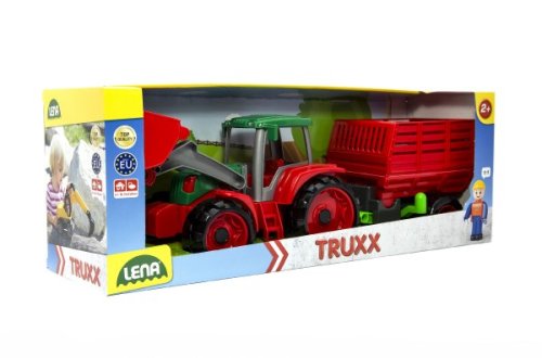 Truxx traktor se lžící a vozíkem z kvalitního plastu a velmi pevnou stavbou. Plně mechanicky funkční. Obsahuje odklopitelnou kabinu s aktivním panáčkem. Vyrobeno v ČR