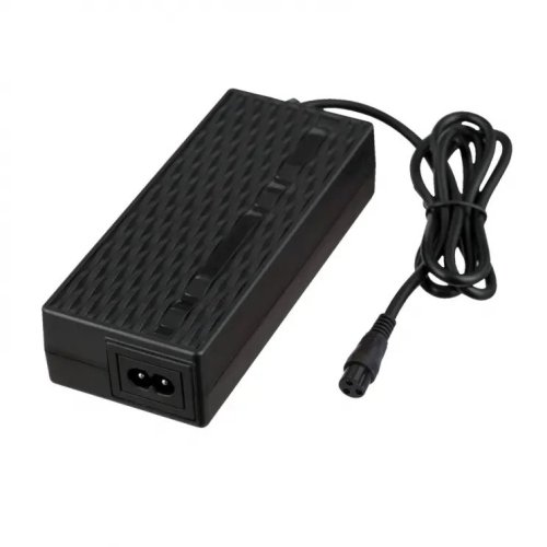 Napájecí adaptér o výkonu 110 W pro elektrokola a elektrokoloběžky se 48V baterií. Zařízení je vybaveno oblíbenou vstupní zásuvkou IEC C8. Výstupní kabel nabíječky (dlouhý 1 m) je zakončen zástrčkou Mini XLR (F). Přívodní síťový napájecí kabel není součástí balení.