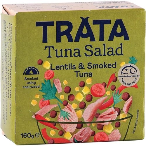 Salát z čočky a uzeného tuňáka, kompletní a vyvážené jídlo připravené k okamžité konzumaci