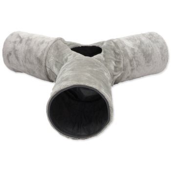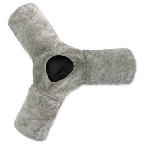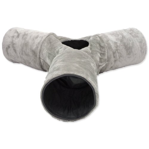 Tunel pro kočky se ve tvaru písmene „Y“ s otvorem uprostřed pro zábavnou hru.