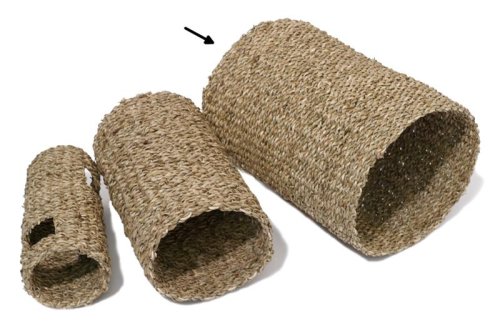Hračka z 100% přírodního materiálu – mořské trávy. Tunel má několik využití – hračka k probíhání či jako úkryt na odpočinek. Hračka je vhodná pro králíky, potkany, fretky a hlodavce. Hračku je možné žvýkat. Na výrobu tunelu nebyla použita žádná lepidla či spony. Tunel z mořské trávy je k dispozici ve třech velikostech. Rozměry: 30 x 20 cm (délka x průměr).