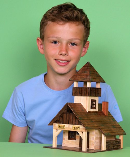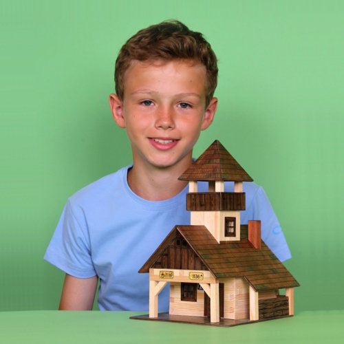 Dřevěná slepovací stavebnice, ve které je vše potřebné k sestavení včetně návodu. Ke slepení se používá lepidlo na dřevo a papír. Není součástí balení.