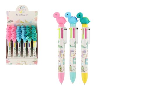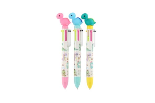 6ti barevná propiska s motivem dinosaura je skvělým pomocníkem nejen pro školáky. Změň si kdykoli barvu náplně přepnutím barvy jiné. Velikost pera je 17 cm. Není hračka.