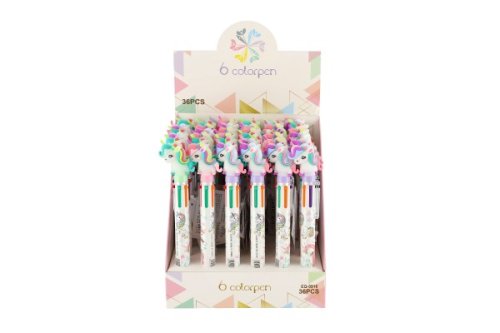 Nápaditá propiska s motivem jednorožce prostě baví! Uvnitř se ukrývá 6 barevných tuh, které lze libovolně měnit. Děti si ji oblíbí jak do školy, tak na doma. Změň barvu stlačením. Rozměry výrobku 4 x 14 x 1,5 cm