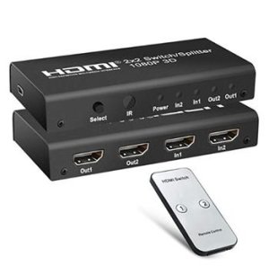 PremiumCord HDMI switch 2:2 , 3D, 1080p s dálkovým ovladačem 2 HDMI zařízení sdílí 2 HDMI výstupní zařízení (obrazovky).