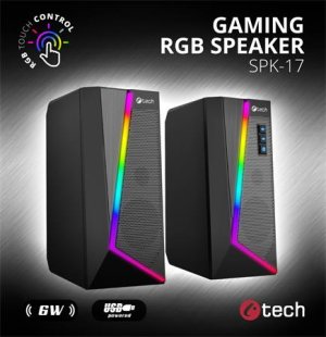 C-TECH reproduktory SPK-17, 2.0, 6W, RGB podsvícení, 3,5mm jack, USB napájení, černé