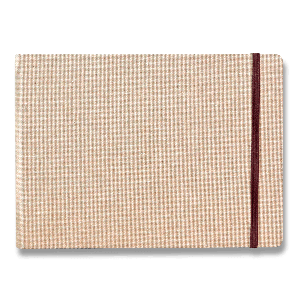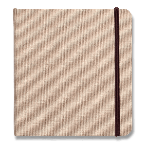 Album Clairefontaine Goldline Natural s rozměry 20 x 20 cm má pevnou látkovou vazbu s pružnou páskou proti otevření.