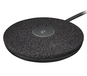 Logitech Rally Mic Pod; Elegantní stolní mikrofon s technologií RightSound automaticky vyrovnává hlasy osob a potlačuje šum pro čistý zvuk.