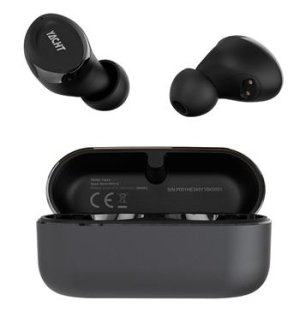 Černá bezdrátová sluchátka do uší s dobíjecím pouzdrem, spárování s telefonem pomocí Bluetooth 5.0, dosah až 10 m, výdrž baterie sluchátek až 3,5 hodiny, výdrž sluchátek s nabíjecím pouzdrem - až 22 …