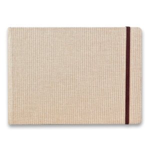 Album Clairefontaine Goldline Natural s rozměry A5 má pevnou látkovou vazbu s pružnou páskou proti otevření.